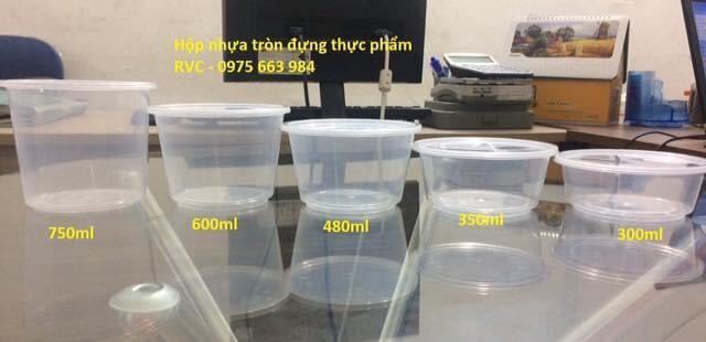 - Hộp nhựa tròn 120ml, 250ml, 300ml, 350ml, 480ml, và 600ml của RVC được sản xuất từ chất liệu PP dùng đựng được thực phẩm nóng, hâm được trong lò vi sóng, mang đến những bữa ăn nóng hổi, vô cùng tiện lợi.