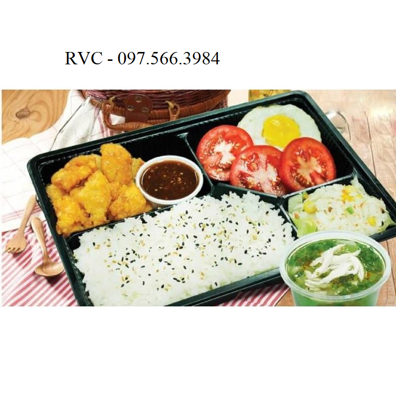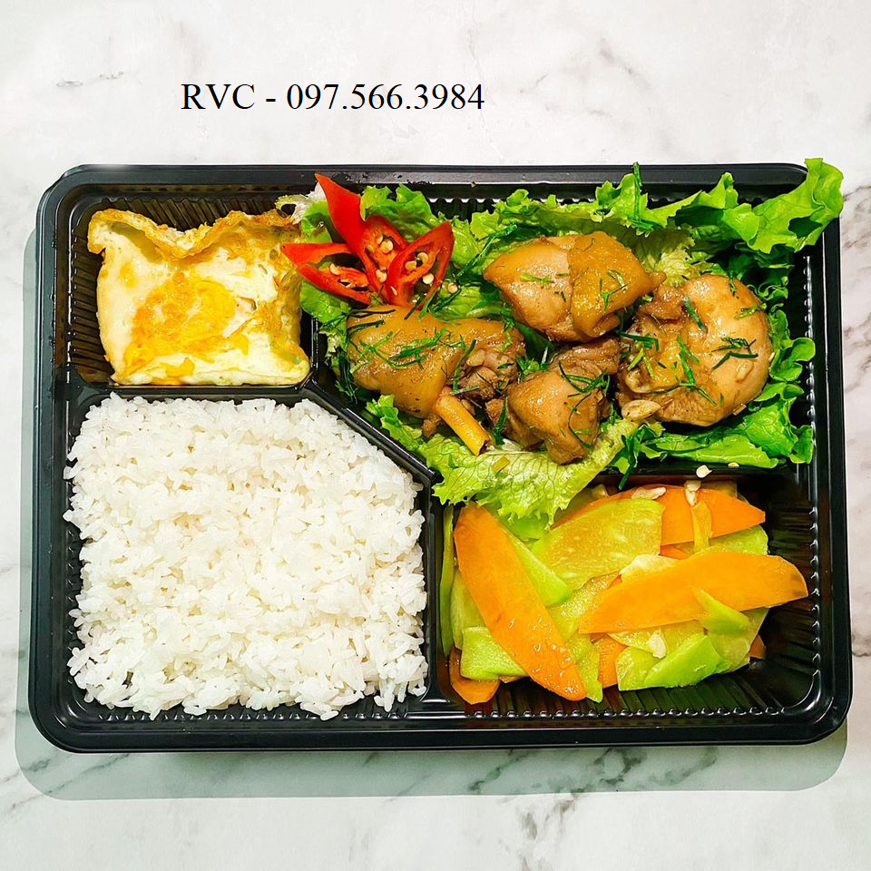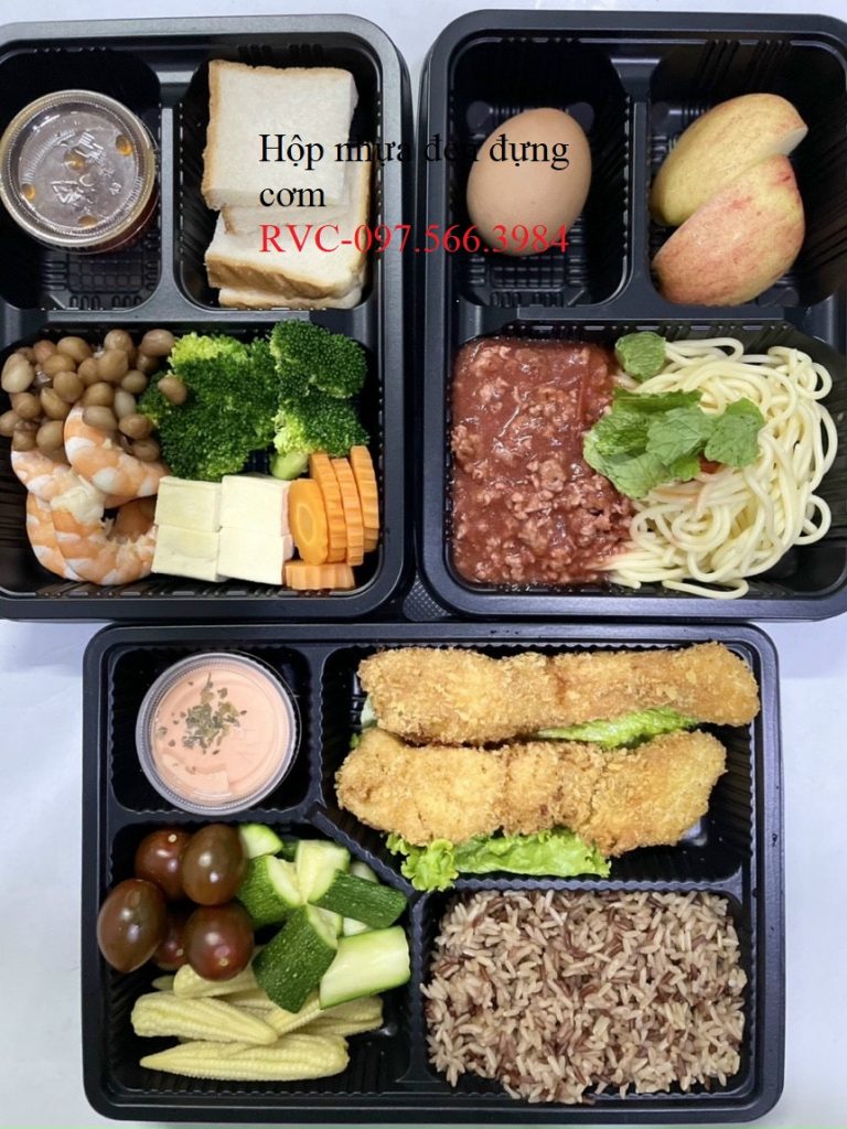 – Đế hộp cơm nhựa 3 ngăn dùng được trong lò vi sóng