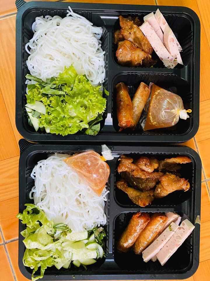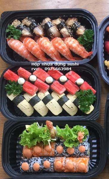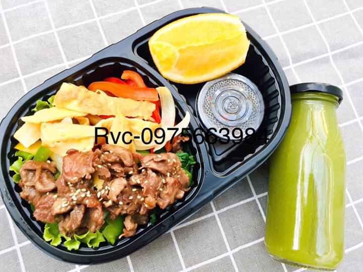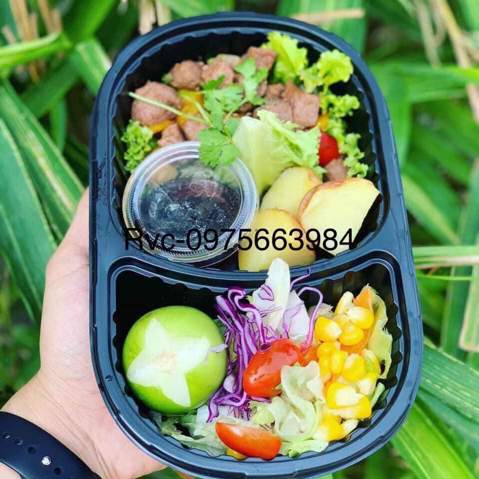 - Hộp nhựa đen 2 ngăn ở giữa tạo không gian đều nhau dễ bày trí món ăn.